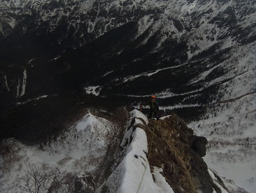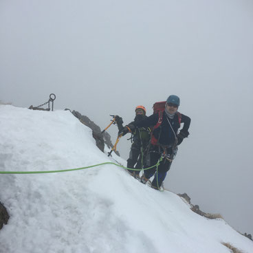 03日 4月 2016 南峰リッジと阿弥陀岳北稜 西穂高岳に行く予定でしたが、悪天候のため八ヶ岳に転戦しました。 写真は文三郎道から南峰リッジを眺めたところ。 赤岳頂上付近にて。 バリエーションルートが初めてのお客様もいましたが、順調なペースでした。 頂上にダイレクトに抜けるルートは登っていて気持ちが良いですね。 2日目は阿弥陀岳北稜。 朝から稜線はガスに覆われていましたが、頂上に着く頃にはガスが抜けて視界が開けました。 tagPlaceholderカテゴリ: 2016年4月